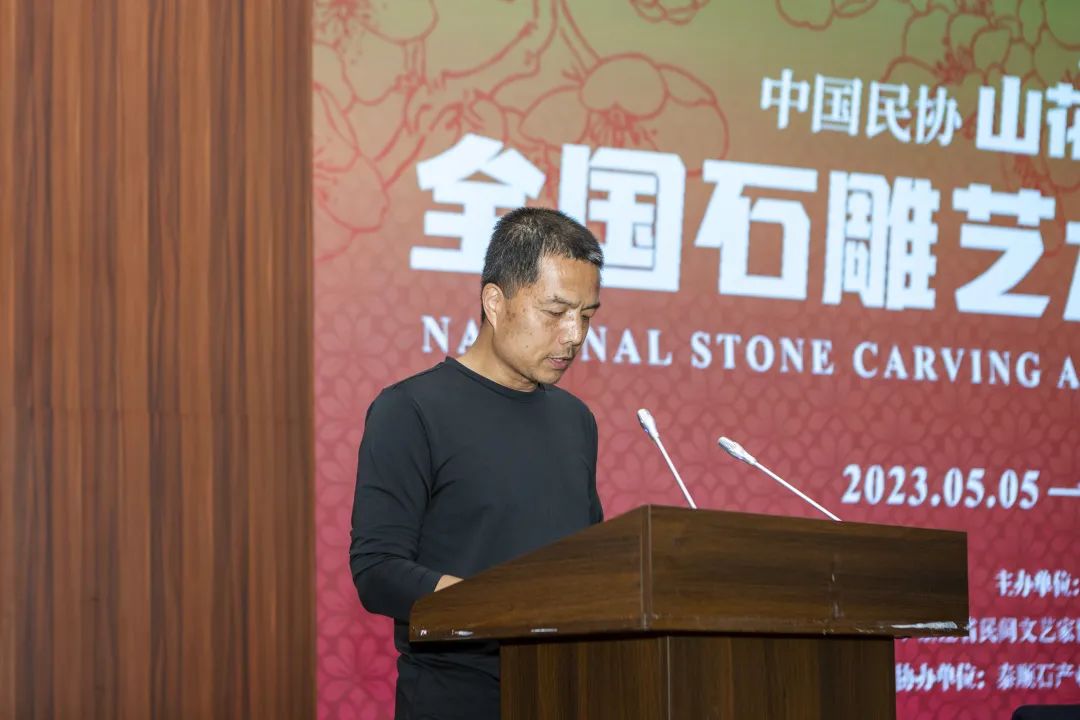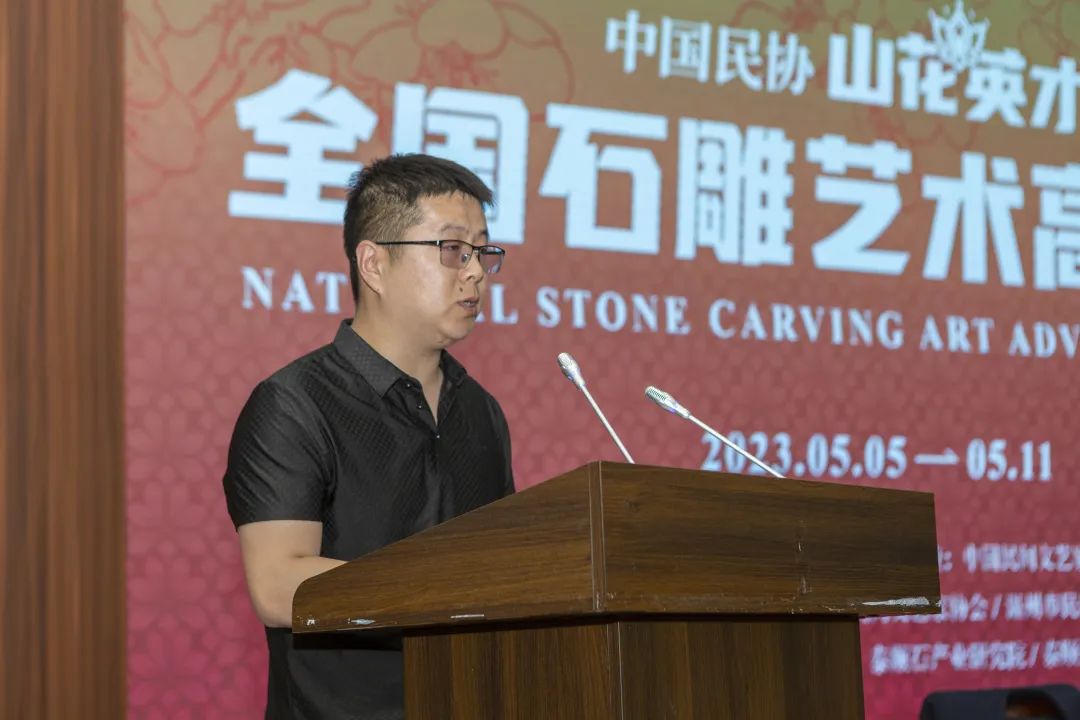 泰顺县委常委、宣传部部长胡晓立致欢迎辞。他表示,泰顺这个名字源自“国泰民安,风调雨顺”,是一个生态宝地、民俗宝库和宝石之源。文人相和,石人相惜。欢迎全国各地的石雕艺术家来到泰顺,以石结缘、以石论道、以石扬文、以石兴业,为打造中国式现代化山区县样板助力添彩!