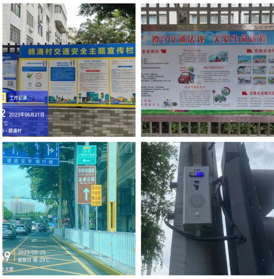 麻涌交警落实各村(社区)在村委会及周边、学校内部及周边设立专门的交通安全主题宣传栏,根据宣传对象设定相对应的宣传内容,并定期更新,切实加强各村(社区)工作人员、学校师生的交通安全宣传教育。在各村(社区)村口或交通安全劝导站设置警示提示牌,提醒广大驾驶员及群众出行自觉遵守交通法规。另一方面,利用各村(社区)固定或移动的农村大喇叭定期播放交通安全提示语句,提醒广大群众文明参与交通,安全出行。