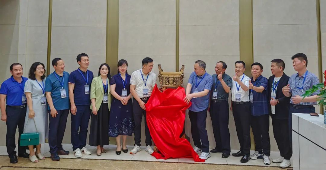 刘金成会长和邓勇执行会长一起为“鼎盛千秋”大鼎揭幕。
