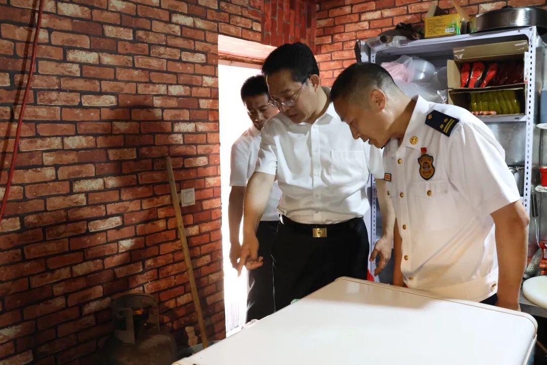 在保胜路,杨大勇随机抽查了部分快餐店、烧烤店等餐饮门市。他仔细查看了厨房,检查了液化气钢瓶的使用、燃气管道安装距离、燃气报警器是否正常工作以及电线是否裸露悬挂等情况。他还核查了灭火器等配备。对于发现的安全隐患问题,杨大勇要求立即整改并确保达标。他强调,安全生产关系到人民生命,饭店餐馆是消防重点领域。要压实属地管理责任、部门监管责任、企业主体责任,深入细致开展排查整治。要抓好员工消防安全和应急处置培训,对同一空间“三合一”、私拉电线等隐患问题,务必做到即发现即整改。要定期回头检查,绝不能有任何侥幸心理,坚决守住群众生命安全的底线。