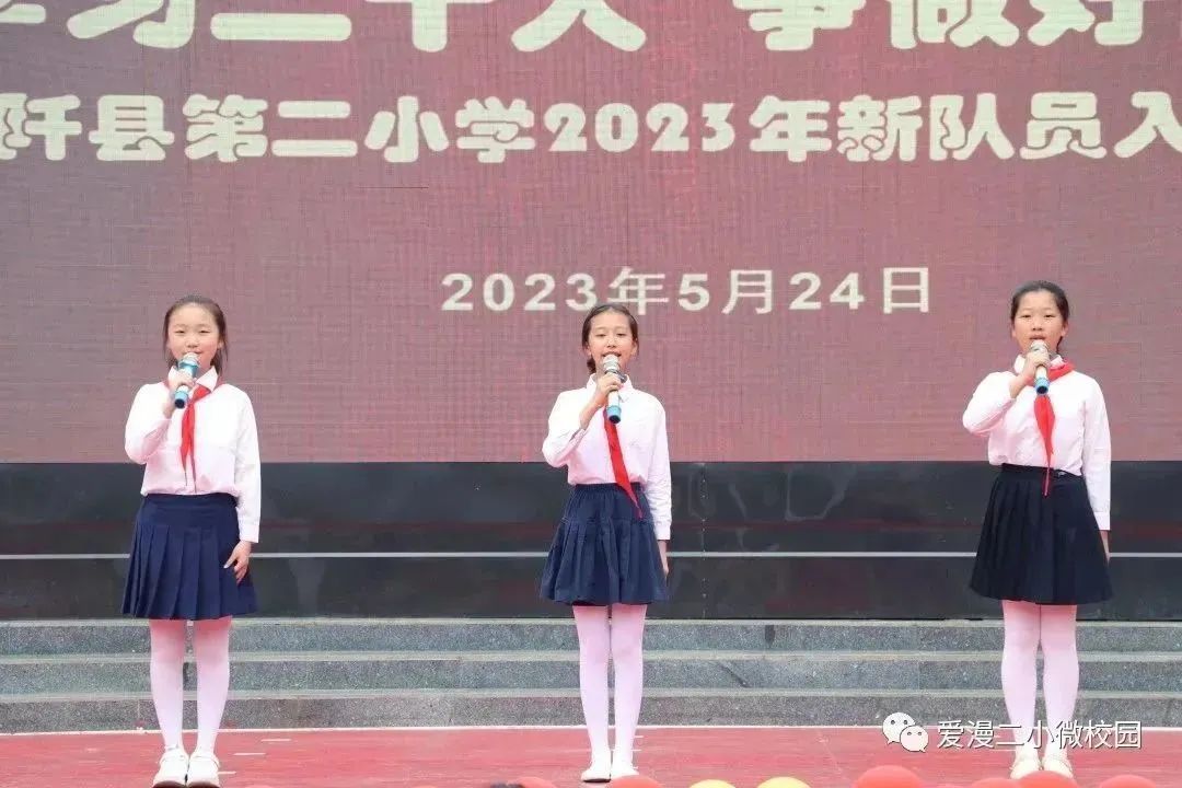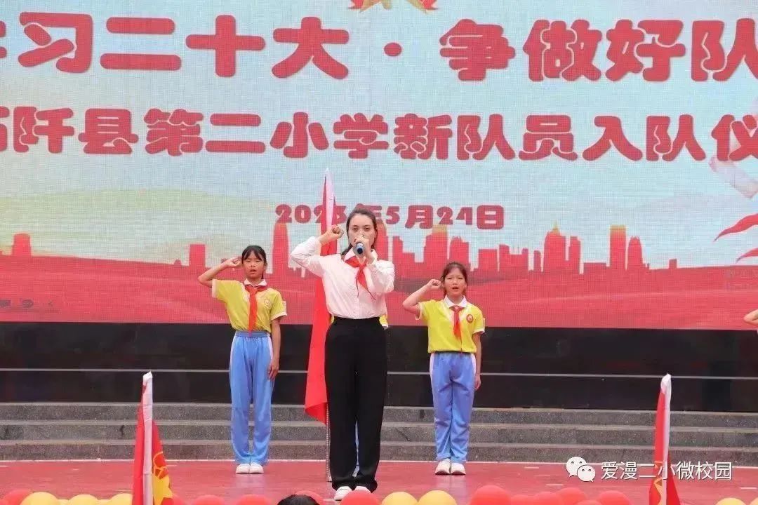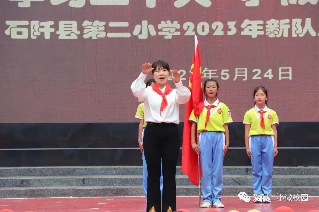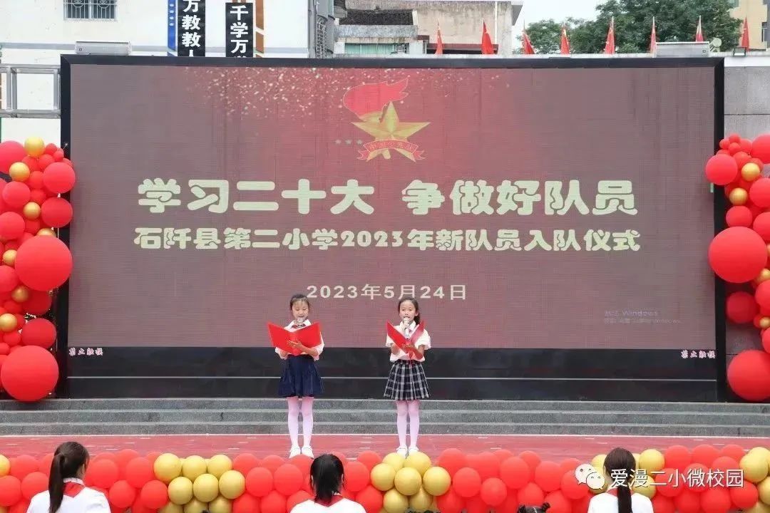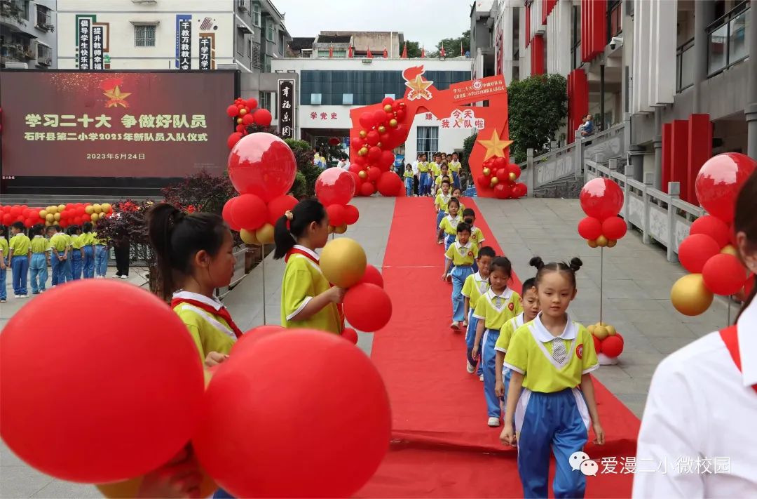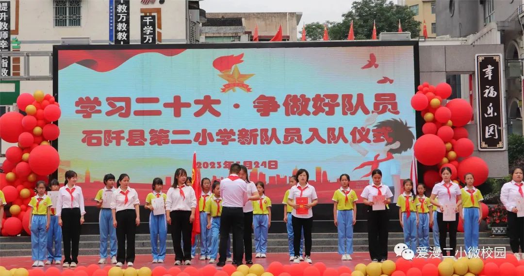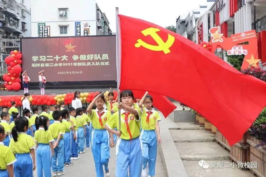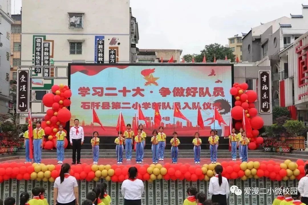 为了深入学习和贯彻党的二十大精神,激励学生传承先辈的志向,弘扬爱国主义和革命传统精神,增强少先队员的使命感和归属感,石阡县第二小学于5月24日举行了“学习二十大争做好队员”2023年新队员入队仪式。