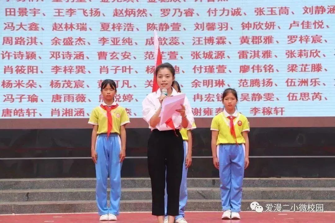 学校少工委副主任韦黔宁宣布了新聘中队辅导员的名单。