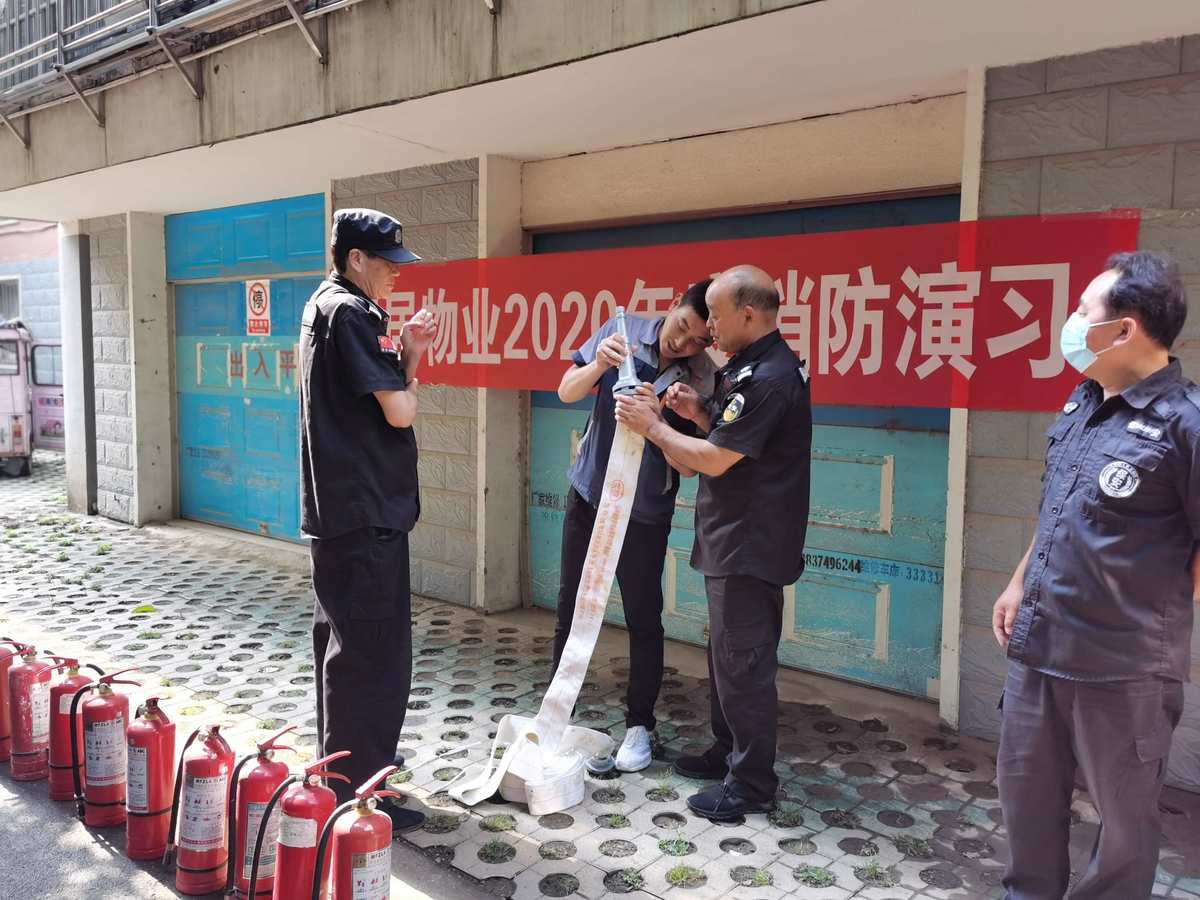 在培训中,培训人员向物业工作人员和小区居民详细讲解了如何扑救高层建筑常见火灾、火灾处置程序、灭火器和消火栓的使用方法、火场逃生与自救、如何正确扑救和控制初起火灾、如何组织人员疏散等内容。此外,培训人员还现场示范了灭火器、消火栓、水枪和水带的使用方法。为了取得实效,员工们现场进行了灭火演练,假设小区发生了火灾,物业公司员工第一时间启动应急预案,组织扑救火灾,并引导现场人员迅速有序地疏散。