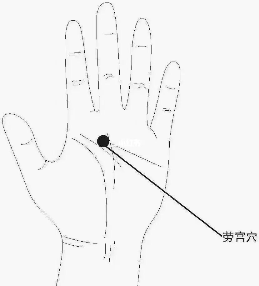 手心处的穴位名为劳宫,当手握拳时,中指下方的部位即为此处。劳宫穴属于心包经,其性质偏热。
