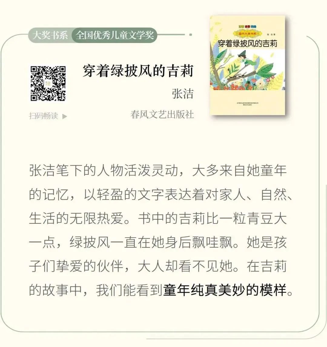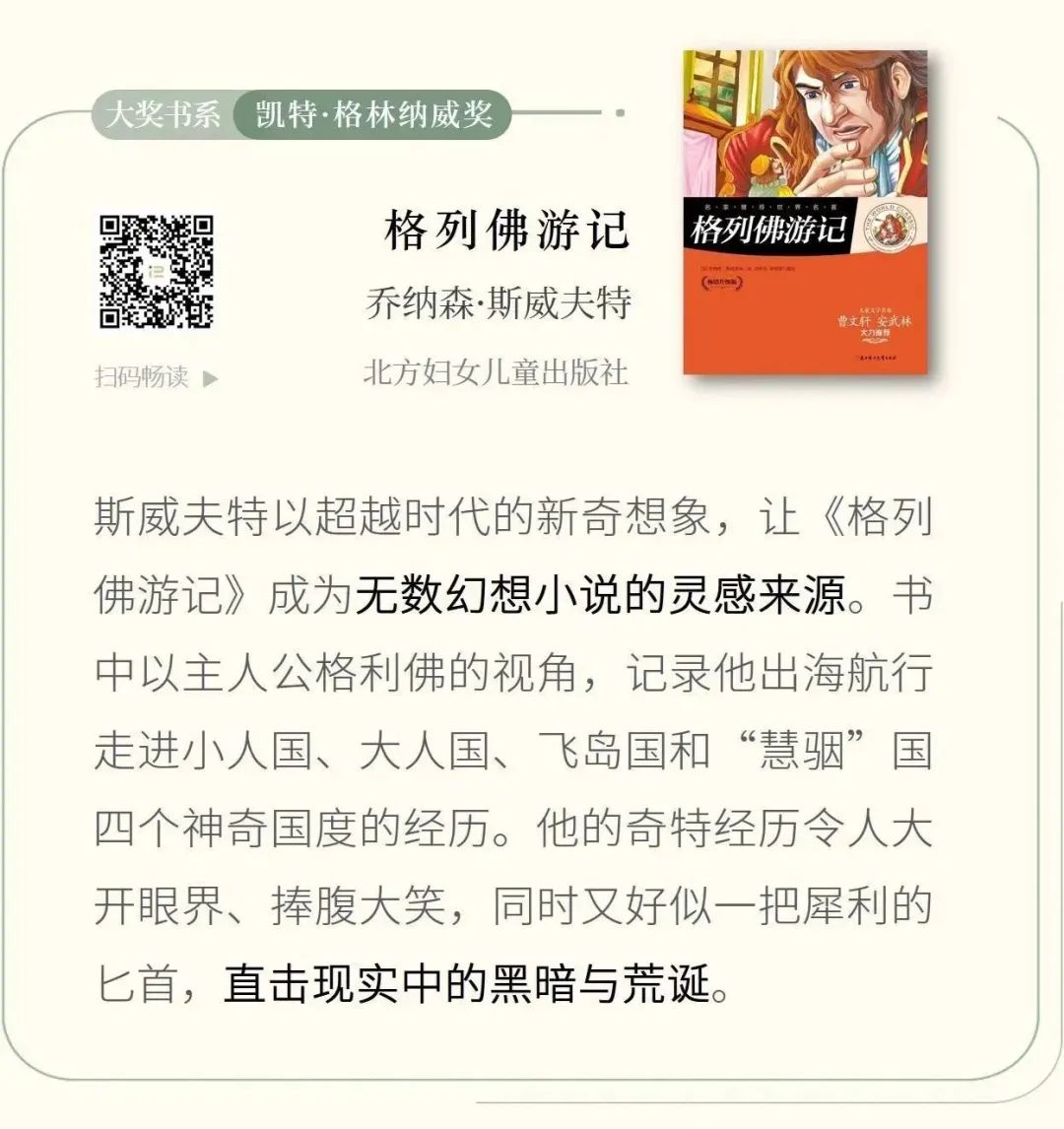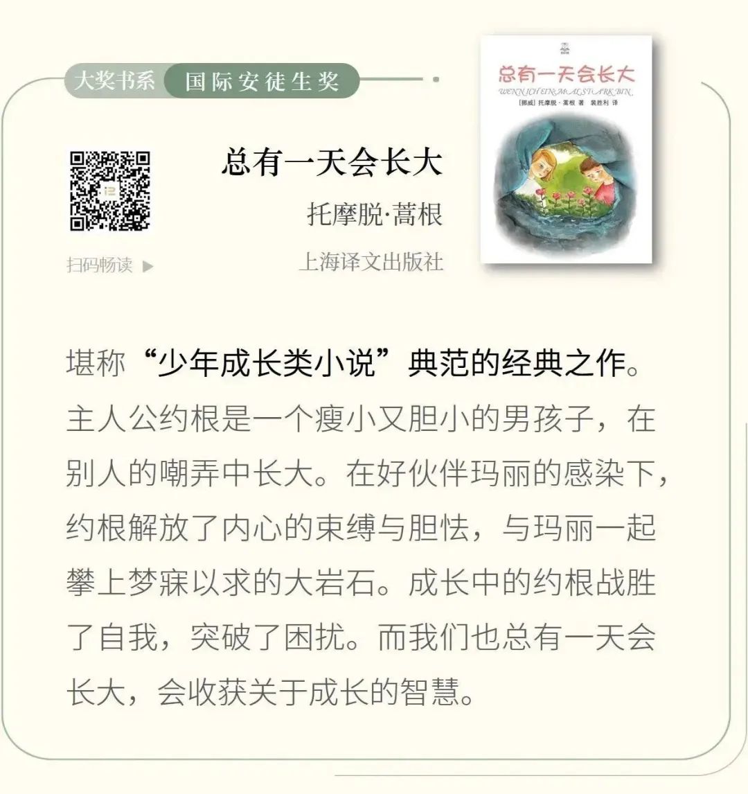 从全国优秀儿童文学奖、国际安徒生奖、纽伯瑞儿童文学奖、凯特·格林纳威奖这四项童书大奖中,我们精选了八本获奖图书。这些获奖图书都是我们童年不可错过的精彩故事,现在,它们将送给正在长大的你。