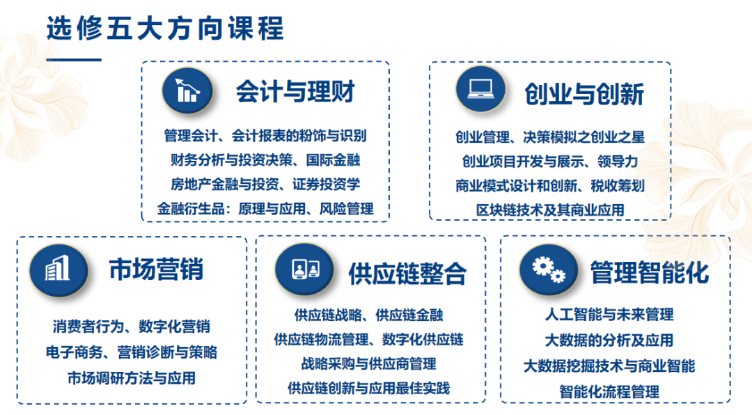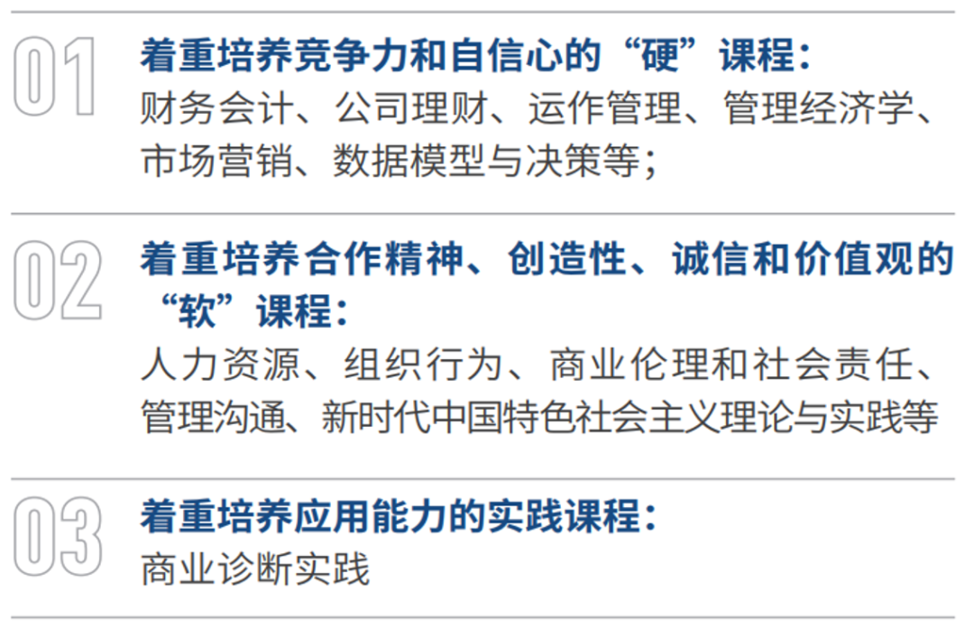 基于MBA3.0课程体系,我们进行了系统性的改革和结构性优化,全面提升了课程的质量。我们从素质品格、管理理念、战略视野、领导能力、整合实践和前沿科技等方面进行了全方位的提升,以更好地满足当前市场对高素质人才的需求。