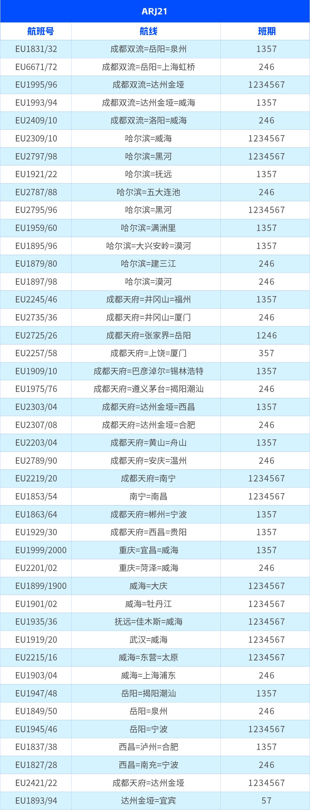 成都航空公司作为ARJ21飞机的首家运营商,目前拥有最多的该机型飞机。本月,该公司新开通了3条连接新疆省内城市的航线。