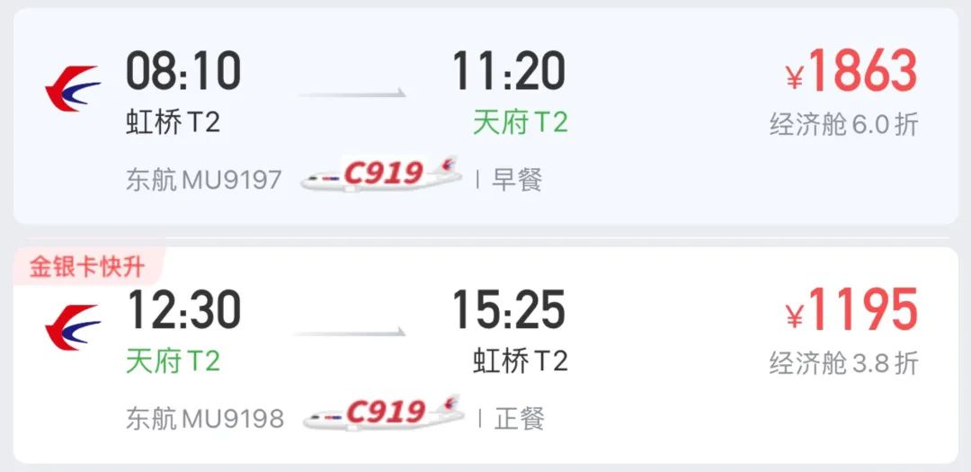 首架国产大飞机C919目前由东航运营,旅客可以在上海虹桥至成都天府的航线上体验到这款国产飞机。