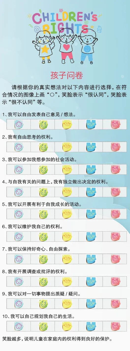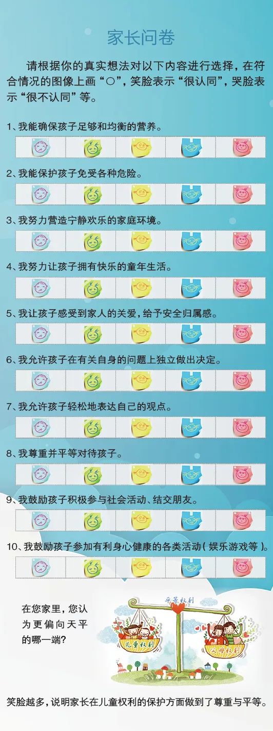 下面两个小问卷,可以让儿童和家长一起进行自测,看看家庭中是否尊重和平等地保障了儿童的权利。