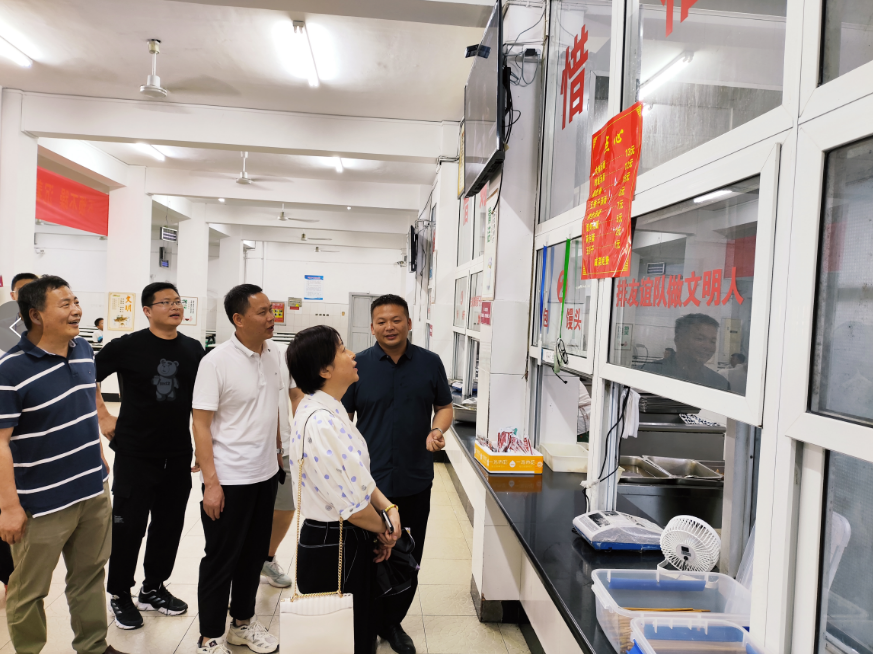 一行人深入了解了高考学生的食宿情况和校园环境。他们看到学校食堂大厅干净整洁,菜品丰富多样且色香味俱佳;寝室整洁明亮、温馨舒适,领导们纷纷点头称赞。他们对校园内创设的八大景观和整洁的环境表示了极大的赞赏。