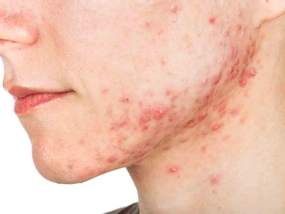 有些痤疮会出现多种红色斑点,出现在身体其他部位。痤疮是一种皮肤毛囊腺管堵塞,伴随细菌感染而引起的慢性皮炎反应。常见于脸部、胸部和背部,表现为红色突出的丘疹,伴有瘙痒不适。用力挤压会挤出脓状物。