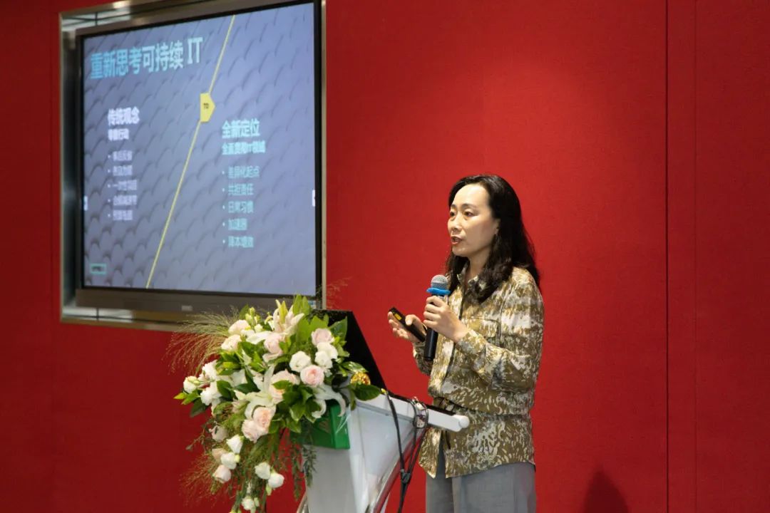 在案例分享环节,万科公益基金会副秘书长兼项目总监刘源(线上)介绍了故宫零废弃项目的进展和成效。慧与(HPE)中国区总裁办主任刘晓妹分享了HPE如何通过科技手段在循环经济、节能减排等方面助力可持续发展。碳阻迹(北京)科技有限公司创始人、CEO晏路辉(2022年度“保尔森奖”优胜奖代表)和苏州国溯科技有限公司创始人、清华大学环境学院党委副书记吴静教授分别介绍了基于水质指纹污染溯源的环境精准监管新模式和一站式数字化碳管理平台项目案例。