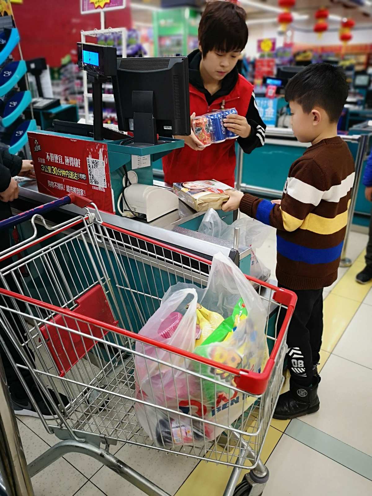 编辑:收银台前排起了长队,20多个结账窗口全开,结账大约需要等待6、7组顾客,时长约5分钟。