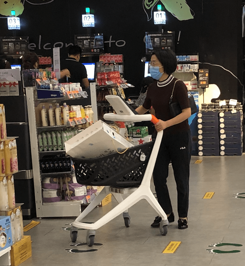 进入门店后,您会发现,无论是以电器日用类为主的二层,还是以生鲜熟食类为主的首层,客流都相当大。在收银区域,排队队伍基本保持在每个收银台3-4组客人,等候时间大约在2分钟左右。