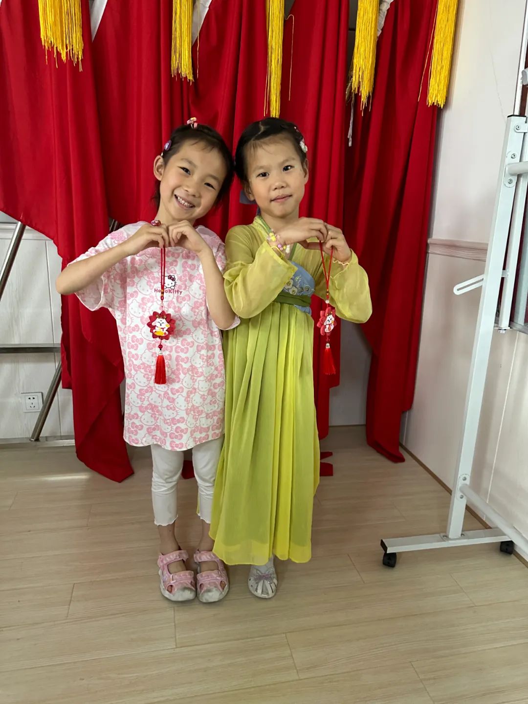 最后,艾老师为每位小朋友制作的衍纸花上粘上了福兔装饰,就得到了一个精美的衍纸福兔挂件。小朋友们都露出了自豪的神情,积极展示自己的作品,脸上洋溢着喜悦和开心,现场氛围欢快融洽。