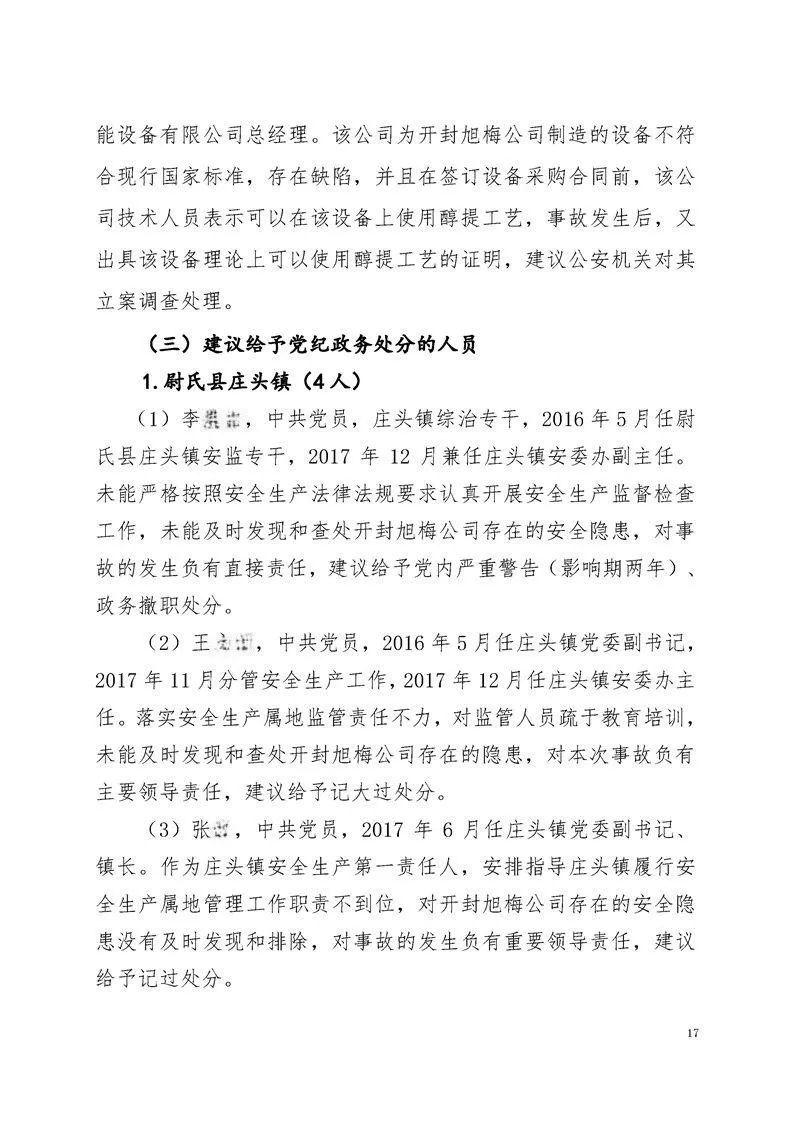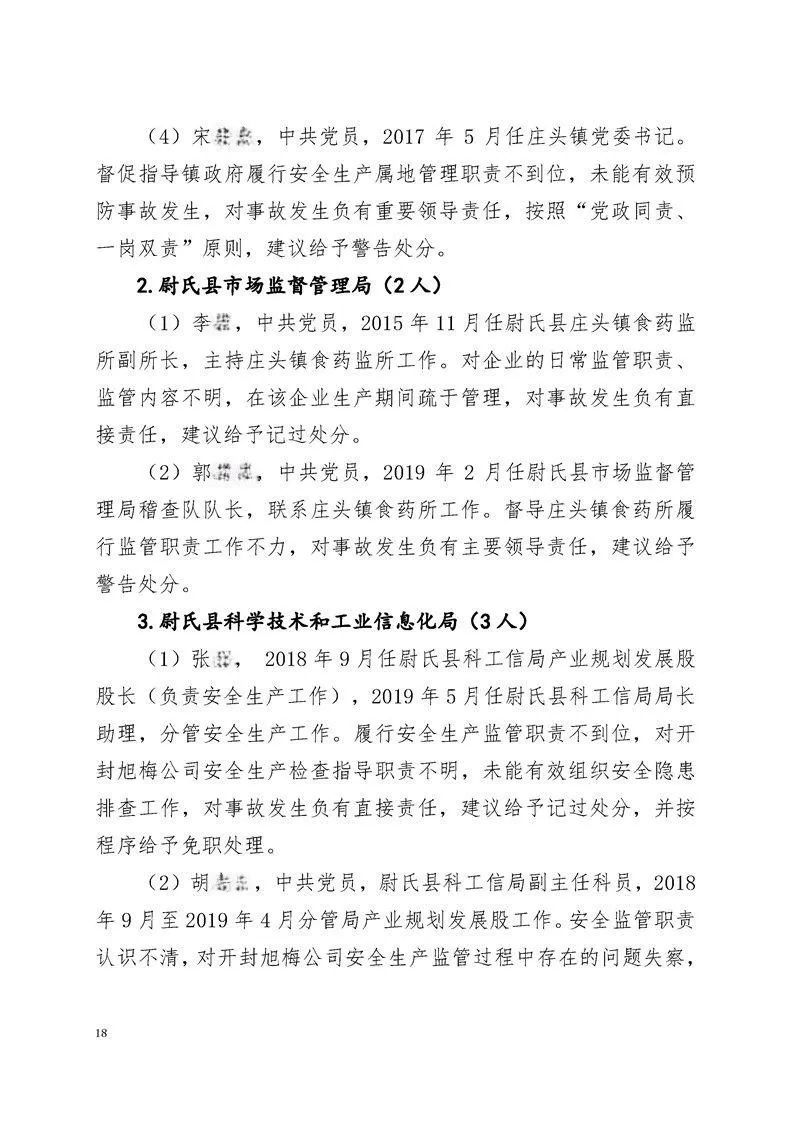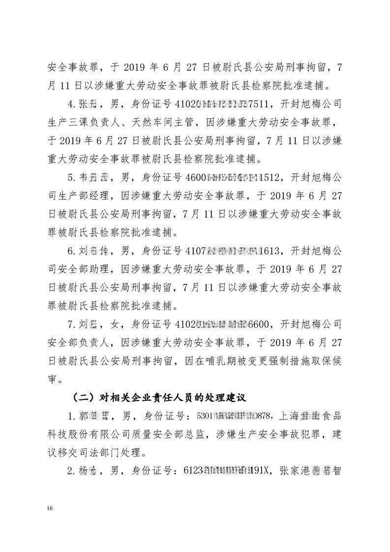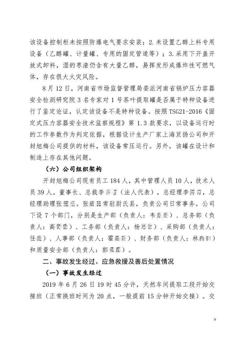 近日,河南省应急管理厅公布了尉氏县旭梅(开封)生物科技有限公司(以下简称“开封旭梅公司”)在6月26日发生的一起较大燃爆事故的调查报告。事故调查组认为,这起事故属于生产安全责任事故。根据事故调查报告,7人因涉嫌犯罪被司法机关采取措施,2名相关企业责任人被建议处理。其中,1人被建议移交司法部门处理,1人被建议公安机关对其立案调查处理。