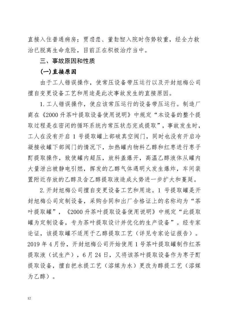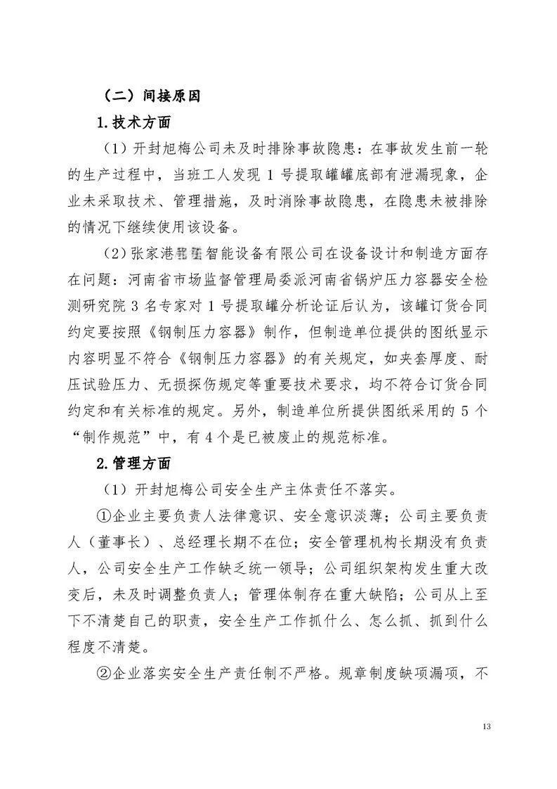 由于工人错误操作,使常压设备带压运行以及开封旭梅公司擅自变更设备工艺和用途是此次事故发生的直接原因。