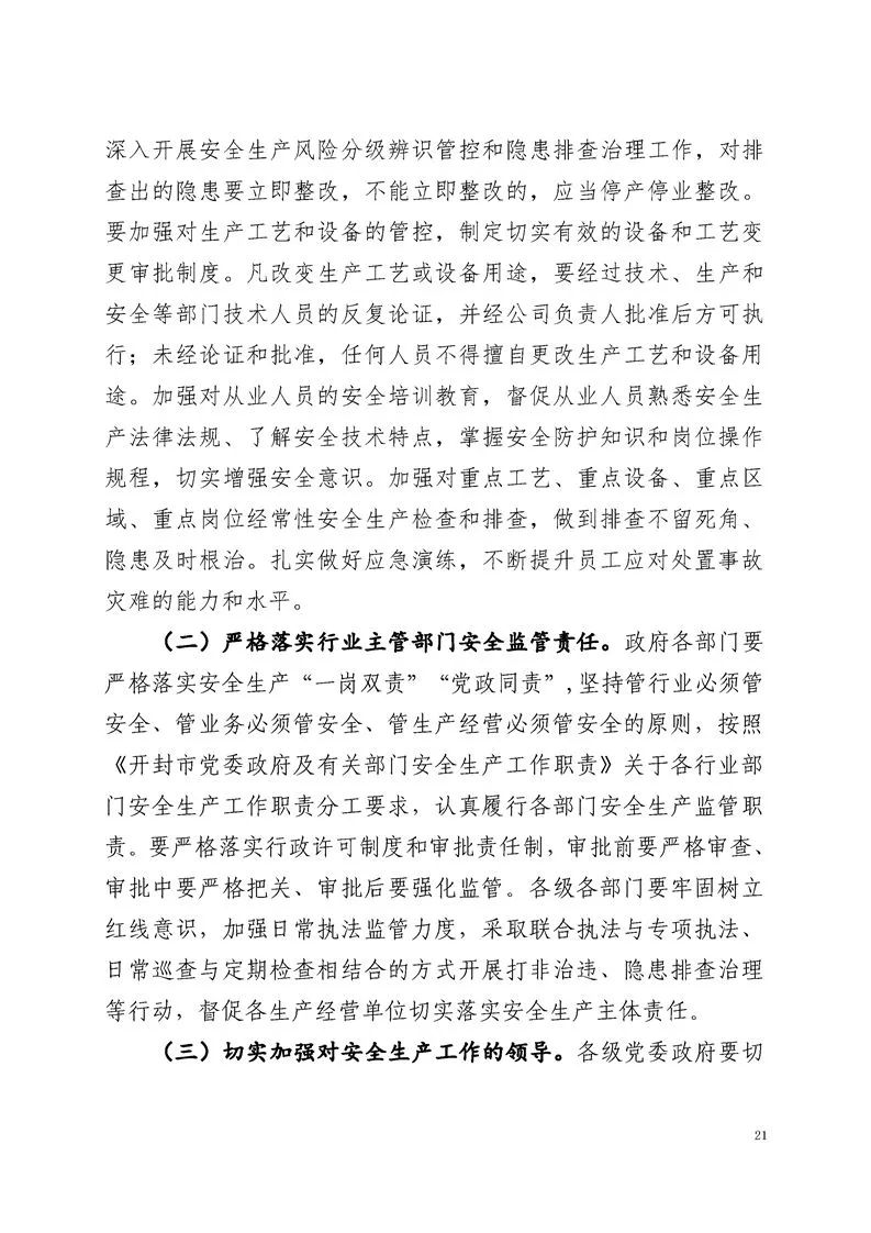 (7)尉氏县县委、县人民政府在贯彻落实安全生产法律法规和上级党委、政府关于安全生产工作的决策部署方面不够到位,流于形式。他们没有充分组织、领导和督促指导县直有关部门落实安全生产“三管三必须”的要求,不够深入。同时,他们也没有督促企业落实安全生产管理责任制,力度不够。