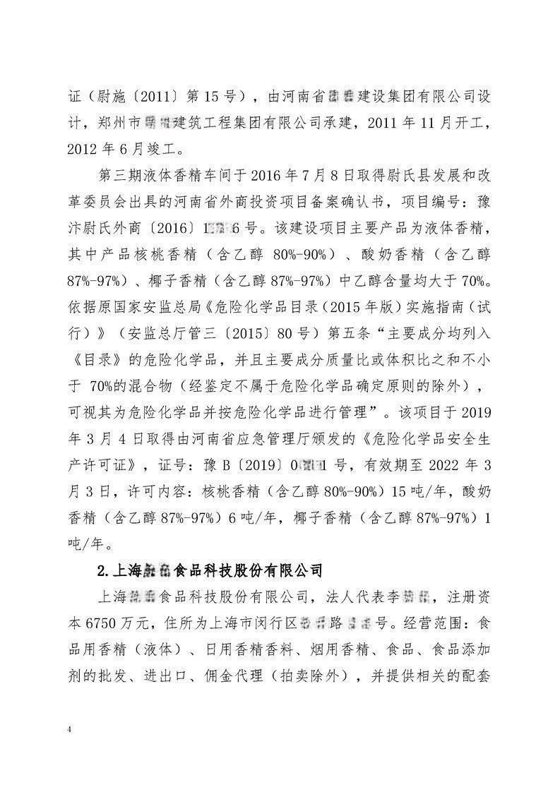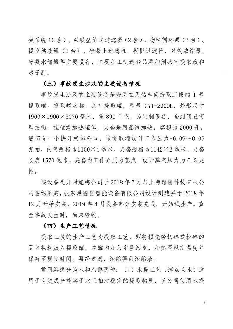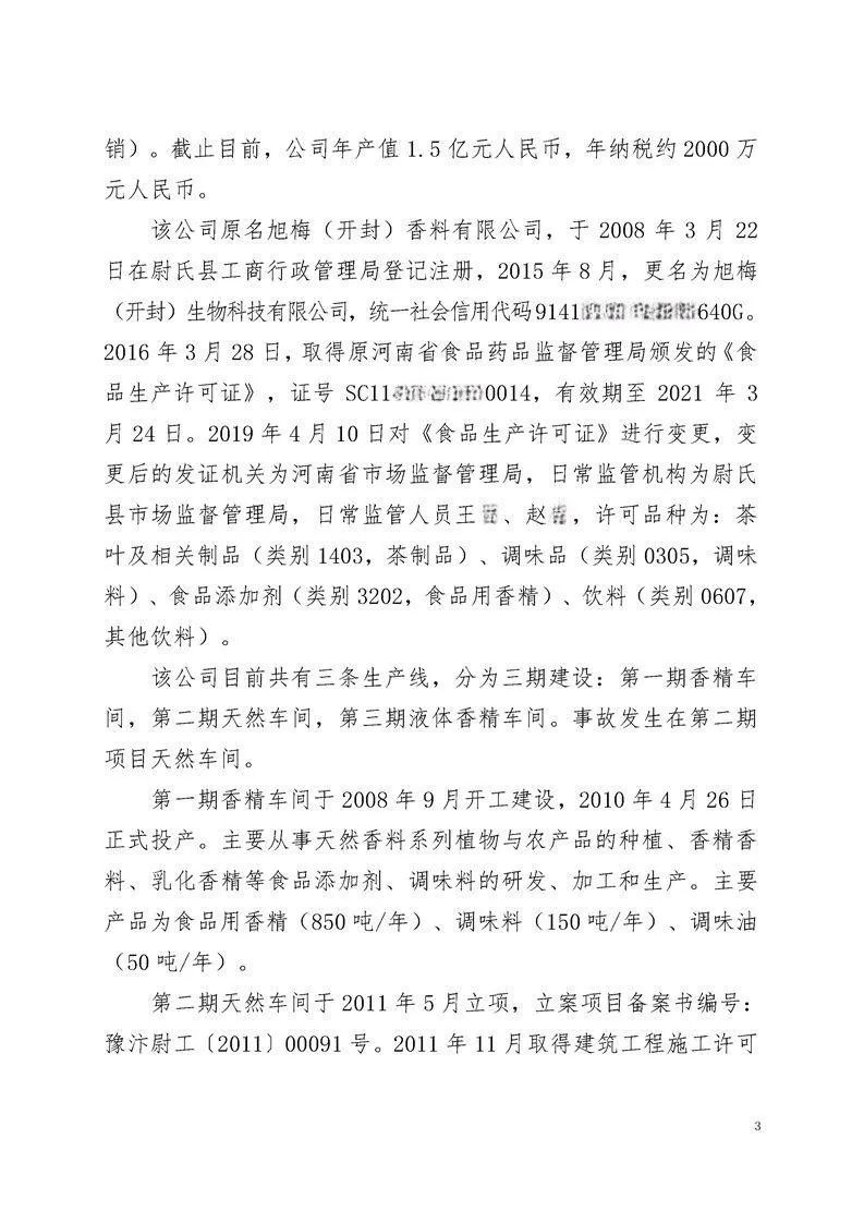 2019年6月26日,开封旭梅公司在天然香料提取车间内发生了一起严重的燃爆事故。事故造成7人不幸遇难,另有4人受伤。此次事故造成的直接经济损失高达约2000余万元。