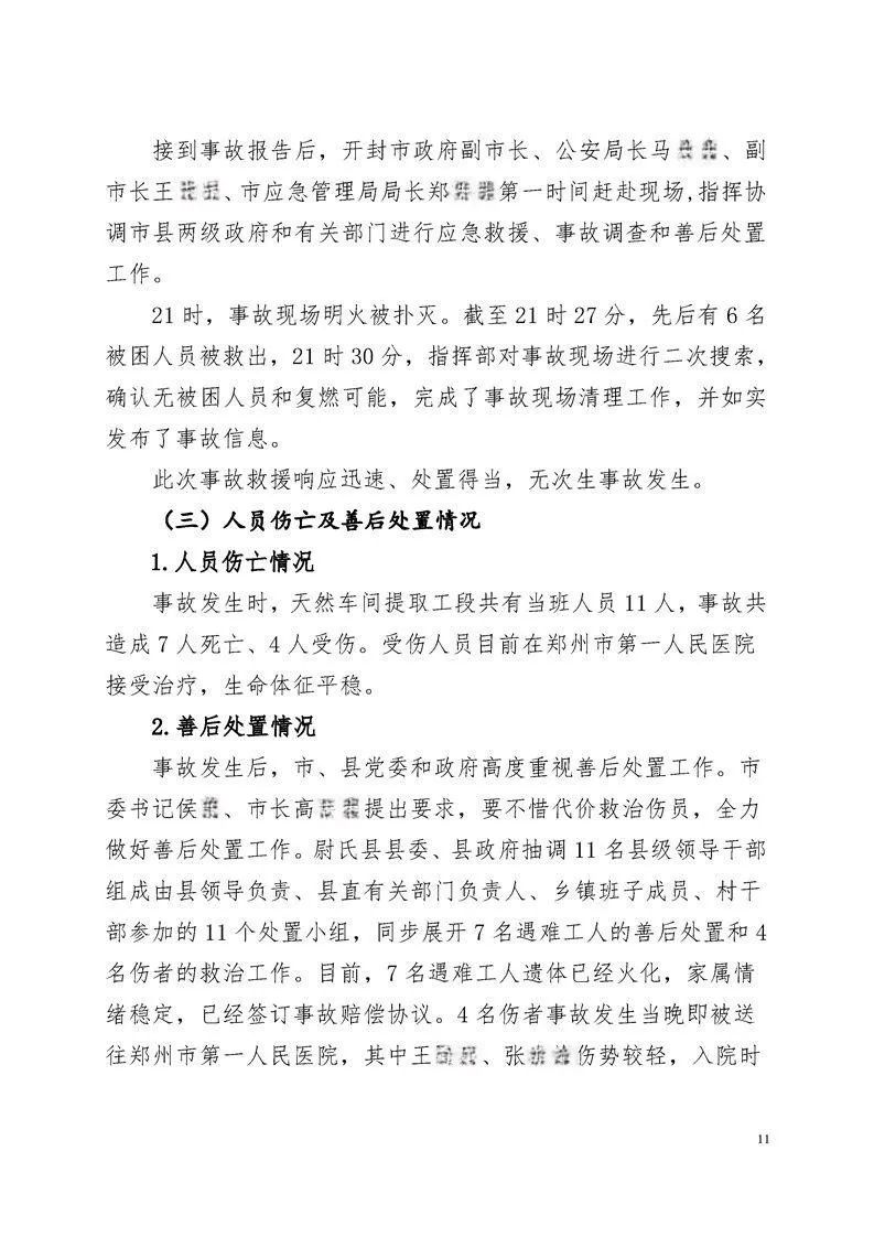 接到事故报告后,开封市政府副市长马xx、王xx,市应急管理局局长郑xx第一时间赶赴现场指挥协调市县两级政府和有关部门进行应急救援、事故调查和善后处置工作。