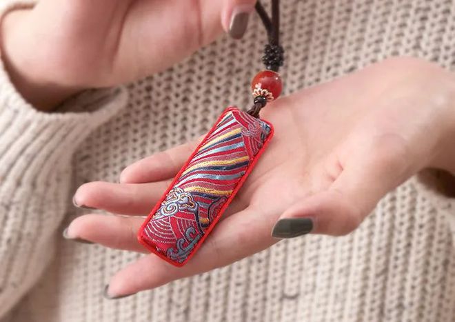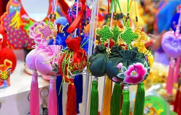 香囊内通常填充一些具有芳香开窍的中草药,具有清香、驱虫、避瘟、防病的功效。它采用五色丝线缠绕而成,或者由彩色绸缎或布块包上棉花,掺入川芎、白芷、排草、芩草、丁香、山艾等中药粉,再用彩绸扎绣而成。香囊下垂着红、绿、青、蓝、紫各种线穗,佩在胸前香气扑鼻。在活动过程中,大家围坐一圈,一边聊着天,一边拿着针线缝缝补补。不知不觉中,一个个小巧玲珑、沁人心脾的香囊就从手中“变”出来了。