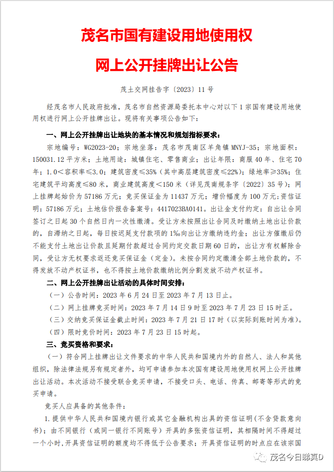 来源:茂名今日、茂名市自然资源局、茂名市公共资源交易中心。