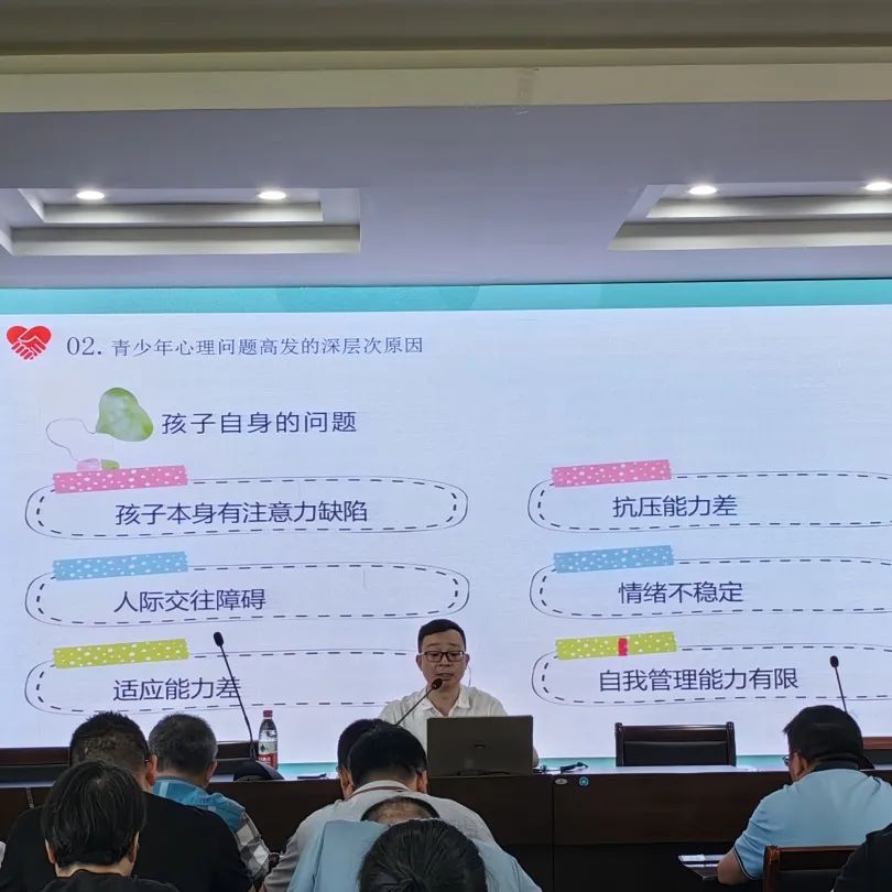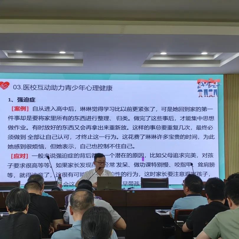 这次讲座中,易医生以心理科医生的专业视角,深入浅出地讲述了相关知识。他从当前大家对青少年心理健康的认知出发,介绍了青少年心理特点、心理健康标准和常见的心理问题。接着,他从典型的案例出发,探讨了青少年心理问题高发的深层次原因。最后,他从医校互助助力青少年心理健康出发,分享了应对心理危机的专业方法。 最后,他从当下教师面临压力的大背景出发,为教师们如何做一个幸福健康快乐的人民教师支招。讲座过程中,他不仅有实际效果,还有实际行动。