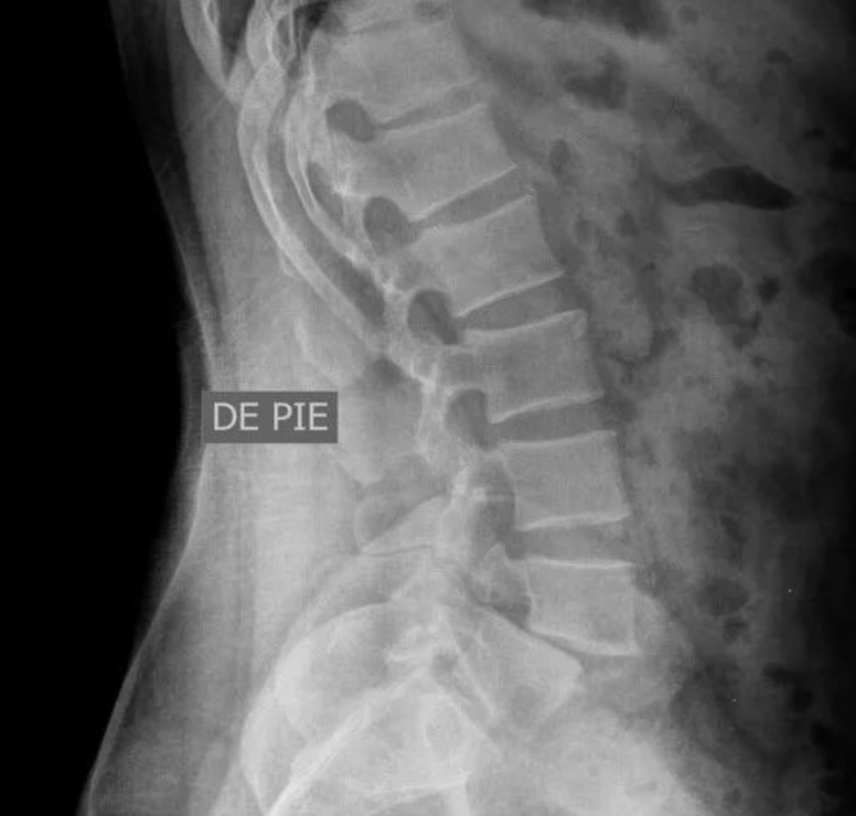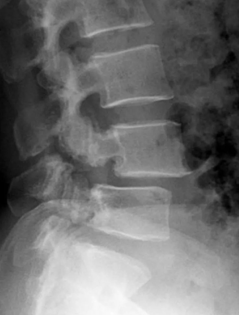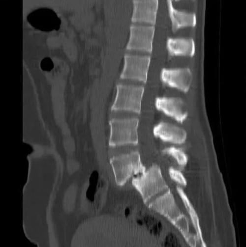 辑:腰4椎弓峡部裂,腰4椎体向前II度滑脱。