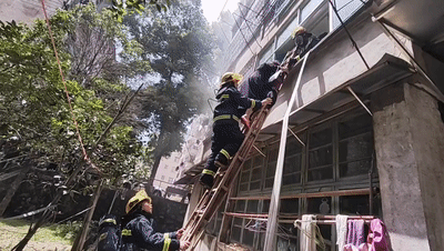 为了防止烟雾的侵入,我们应该等待救援人员的到来。