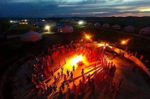 晚上,我们享用了一顿丰盛的晚餐,然后在草原上烧烤。随着篝火晚会的进行,我们一起欢快地舞动。活动结束后,我们带着愉悦的心情返回蒙古包,进入梦乡。