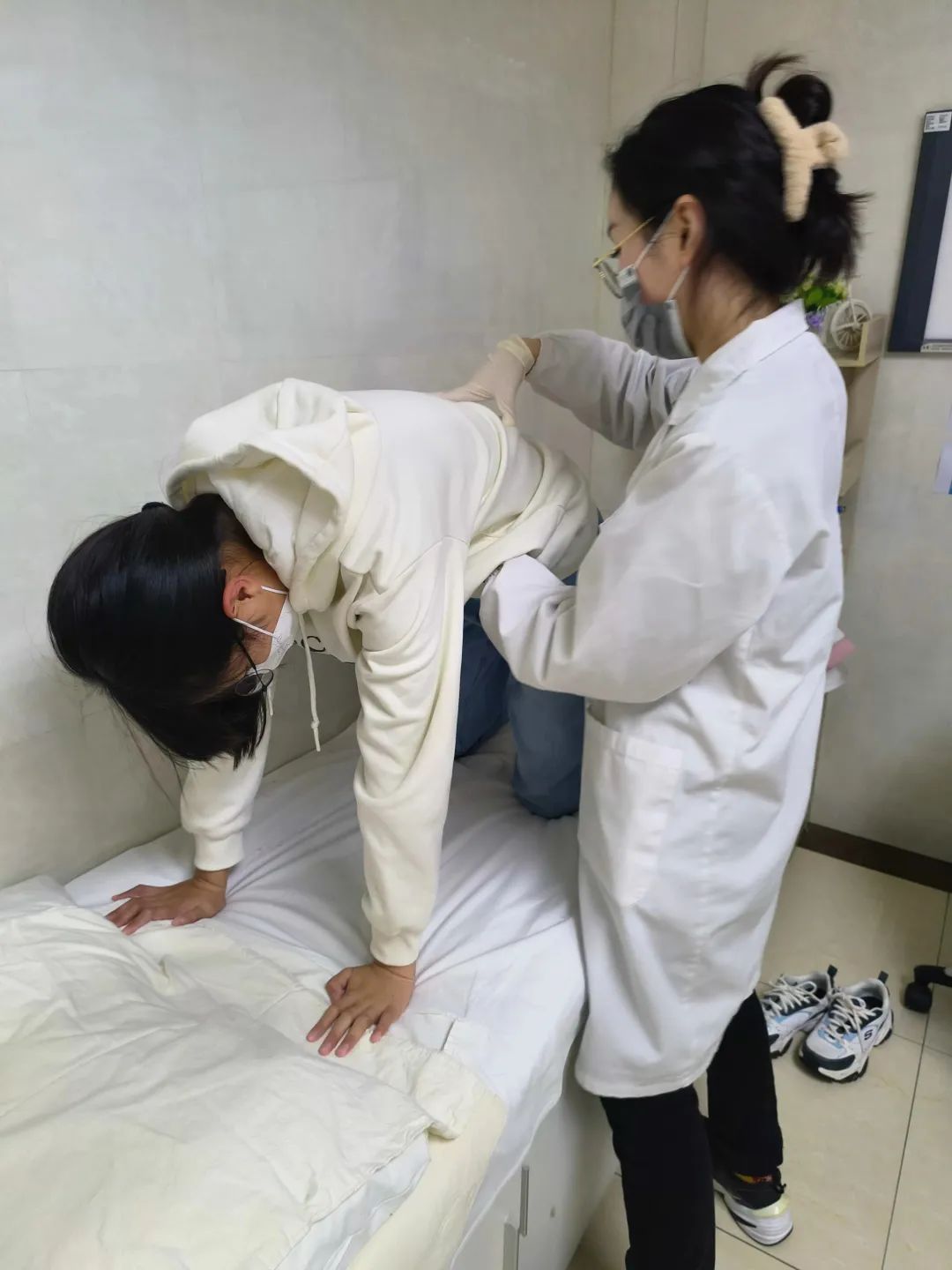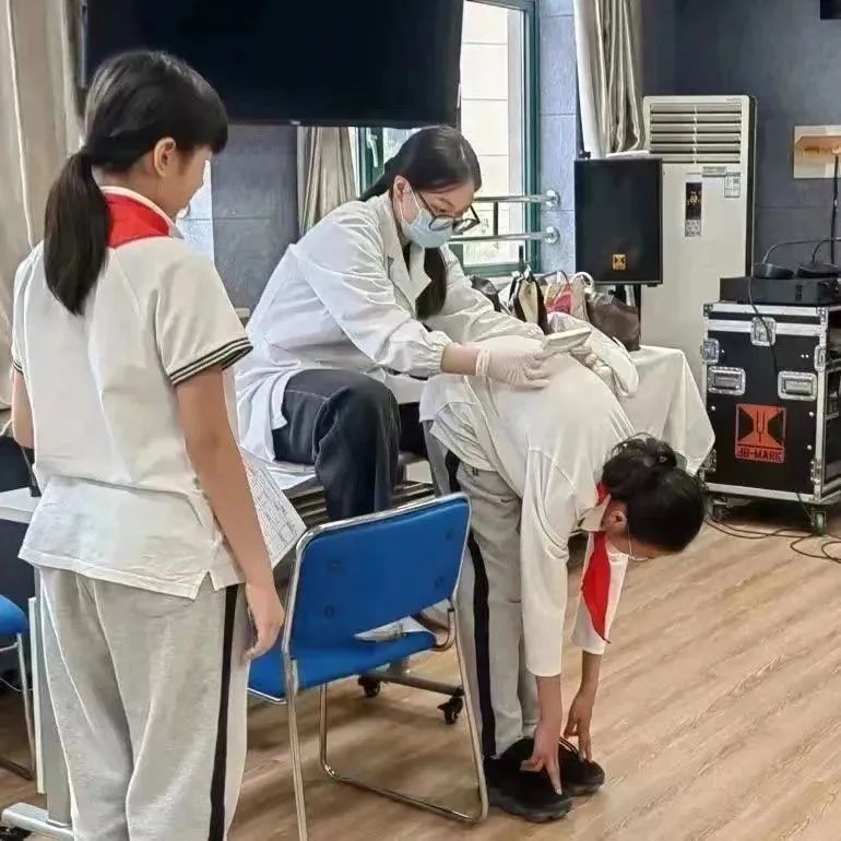 沈洁介绍了一个简易的小妙招,家长们可以在家自行筛查,及时发现问题:前屈试验进行初筛。被检者双膝伸直,躯干由颈至腰徐徐前弯,检查者从背部中央切线方向检查上胸段、胸段、胸腰段及腰段两侧是否等高、对称。不对称者为前屈试验阳性,疑为脊柱侧凸。如果发现上述情况或初筛阳性,建议及时前往医院进一步全面检查,以便明确诊断并制定后续治疗方案。