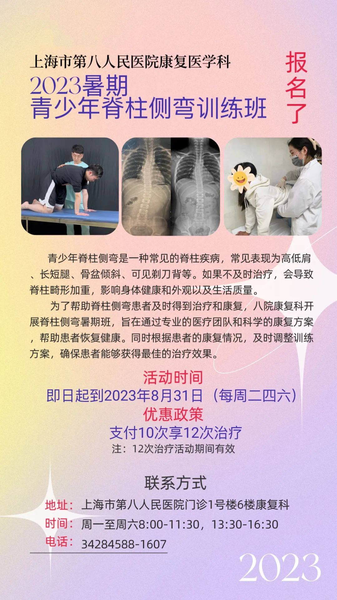 今年夏天,上海市第八人民医院康复医学科开设了脊柱侧凸暑期训练班,每周二、四、六全天。在充分评估的基础上,我们针对需要康复治疗的小朋友,给予个性化的训练指导,包括运动疗法、成套体操和纠正不良生活习性等。这些训练可以有效纠正脊柱畸形,防止疾病进展,提高身体功能,改善心理状态,减轻疾病痛苦。