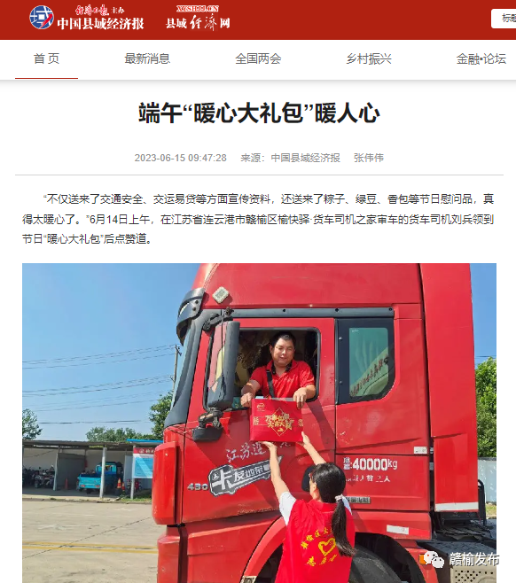 “不仅送来了交通安全、交运易贷等方面宣传资料,还送来了粽子、绿豆、香包等节日慰问品,真得太暖心了。”6月14日上午,在江苏省连云港市赣榆区榆快驿·货车司机之家审车的货车司机刘兵,在领取节日“暖心大礼包”后,对驿站赞不绝口。