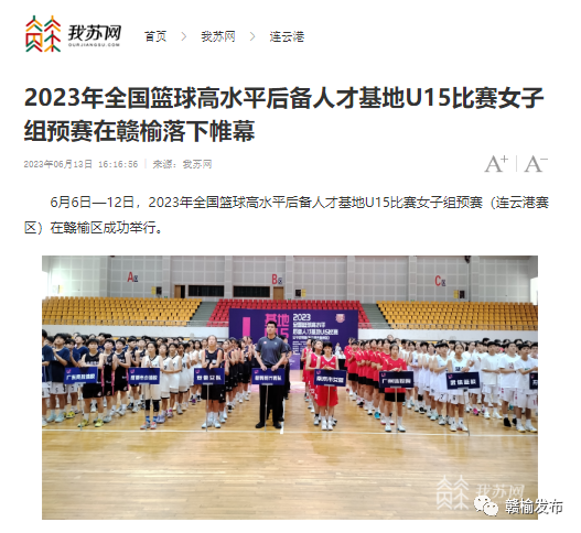 6月6日至12日,2023年全国篮球高水平后备人才基地U15比赛女子组预赛(连云港赛区)在赣榆区举行。