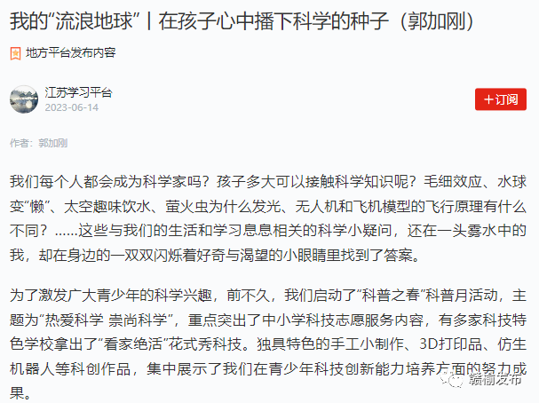 《我的“流浪地球”丨在孩子心中播下科学的种子(郭加刚)》。这样修改后,文章标题更加简洁明了,同时也没有改变原意。