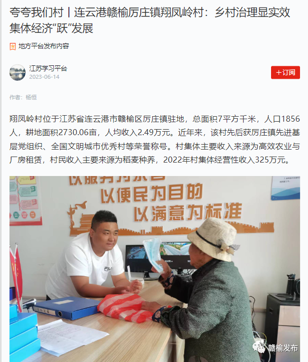 《夸夸我们村丨连云港赣榆厉庄镇翔凤岭村:乡村治理成效显著,集体经济“跃”发展》。