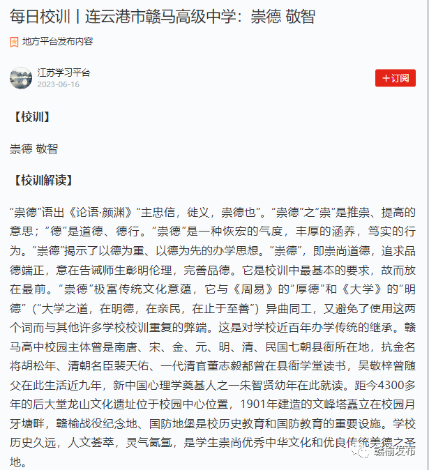 《每日校训丨连云港市赣马高级中学:崇德敬智》。