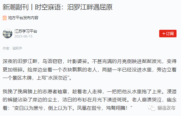《新潮副刊丨时空寐语:汨罗江畔遇屈原》。