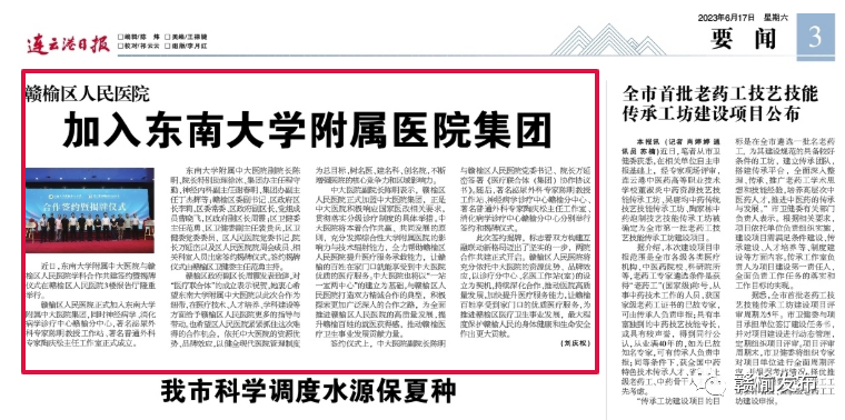 近日,东南大学附属中大医院与赣榆区人民医院举行了学科合作共建签约暨揭牌仪式。仪式在赣榆区人民医院3楼报告厅举行。