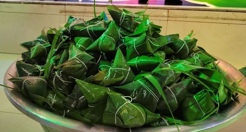 卷粽叶、舀糯米、裹馅料、包粽子、扎粽子……为大力开展“我们的节日·端午”文化活动,端午节这天,铜山街道桥上村的居民聚在一处各展绝活,片片粽叶和晶莹糯米在巧手翻转下,成为玲珑可爱的粽子,欢声笑语间拉近了邻里关系。