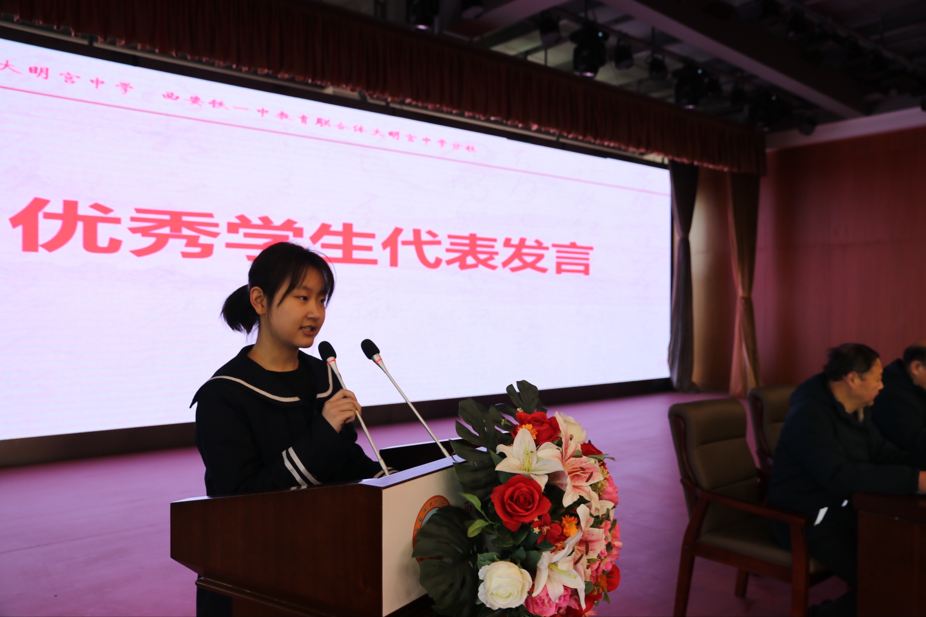 优秀学生代表发表了讲话。